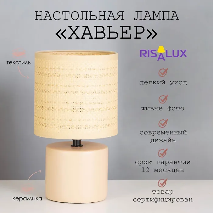 Настольная лампа с подсветкой RISALUX «Мишель», Е27, 40 Вт, золото — Характеристики