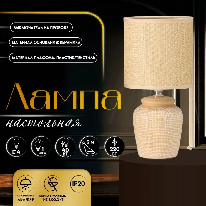 Настольная лампа с подсветкой "Рунди" Е27 40Вт золото RISALUX — Характеристики