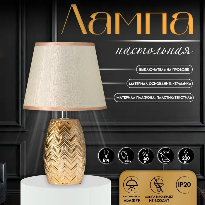 Настольная лампа с подсветкой «Сэбия» Е27 40 Вт золото 21×21×29 см RISALUX — Характеристики