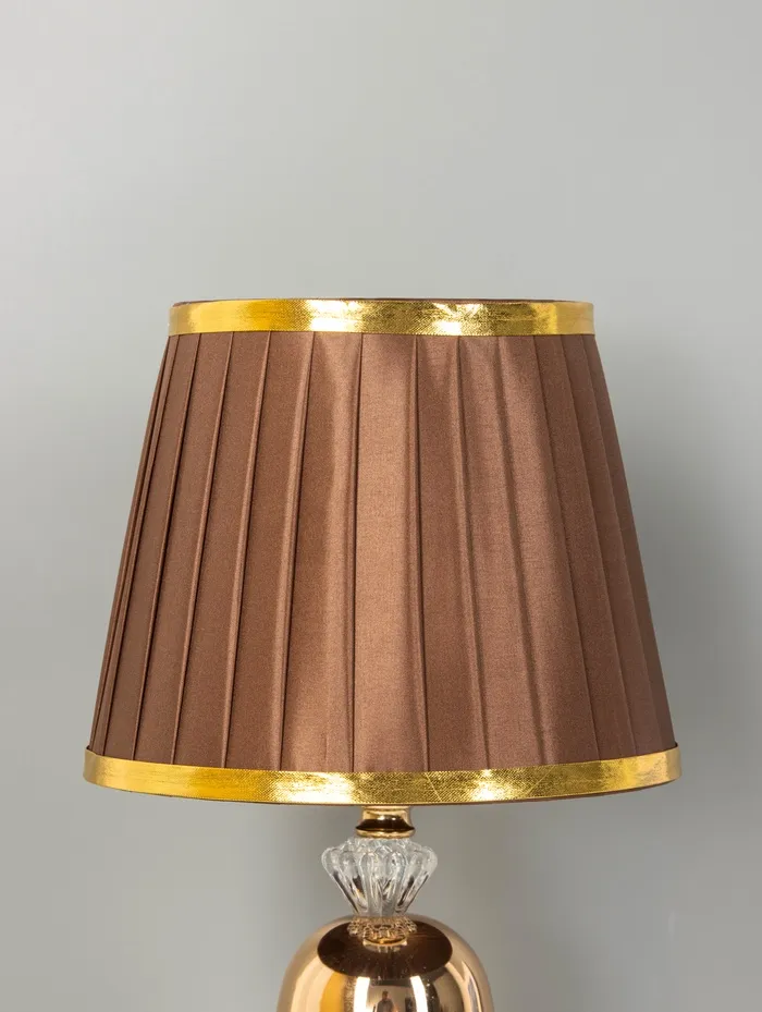 - Тёплый металл, глубокий цвет: Золотистое основание не хромает и не кричит — оно сдержанно блестит, добавляя интерьеру лёгкой роскоши. Коричневый конусный абажур из пластика приглушает свет, делая его мягким и комфортным для глаз.