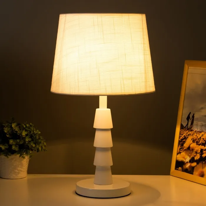 Эта настольная лампа станет отличным дополнением вашего интерьера, сочетая стиль и функциональность. С высотой 43,5 см и размерами 25×25 см, она идеально подходит для освещения рабочего места или создания уюта в спальне. Белое основание из металла и дерева в сочетании с текстильным абажуром в светлых тонах придаёт ей свежий и современный вид.