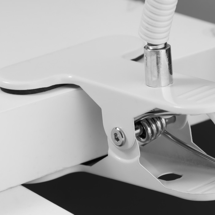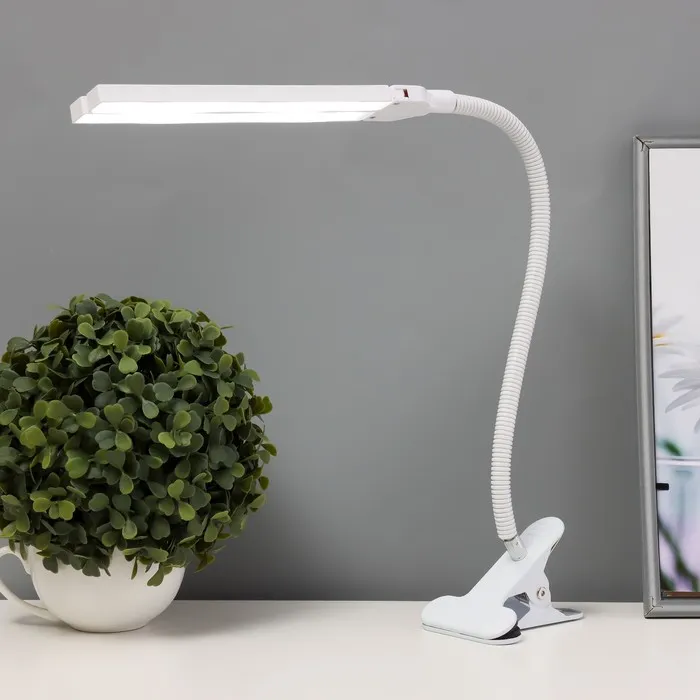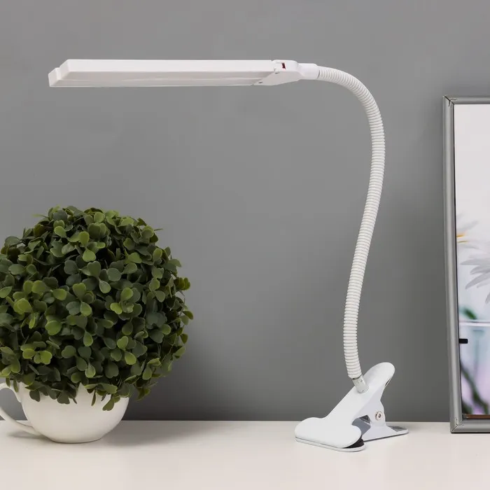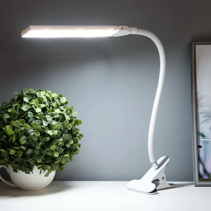 - Крепление на прищепке позволяет легко устанавливать лампу на стол, полку или другую поверхность.