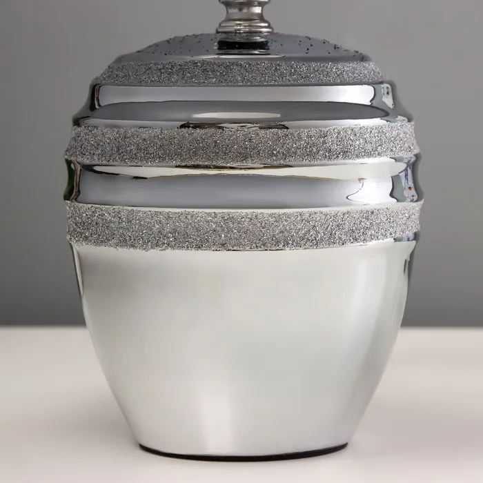 Эта стильная настольная лампа с конусным абажуром станет отличным дополнением вашего интерьера. Высота 34 см и размеры 22×22 см делают её идеальным вариантом для столов, тумб или полок. Серебряное основание из керамики в сочетании с текстильным абажуром создает утонченный вид и обеспечивает мягкое освещение.