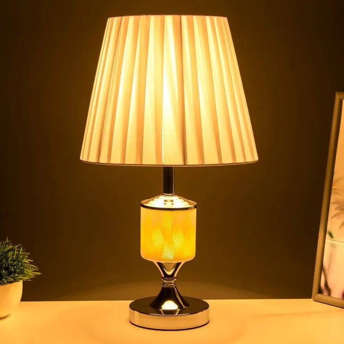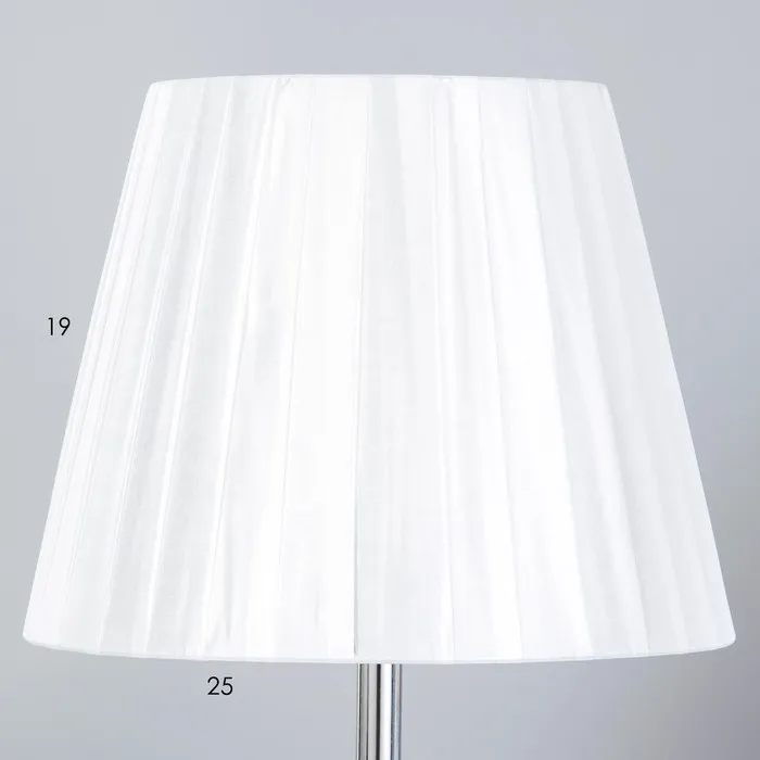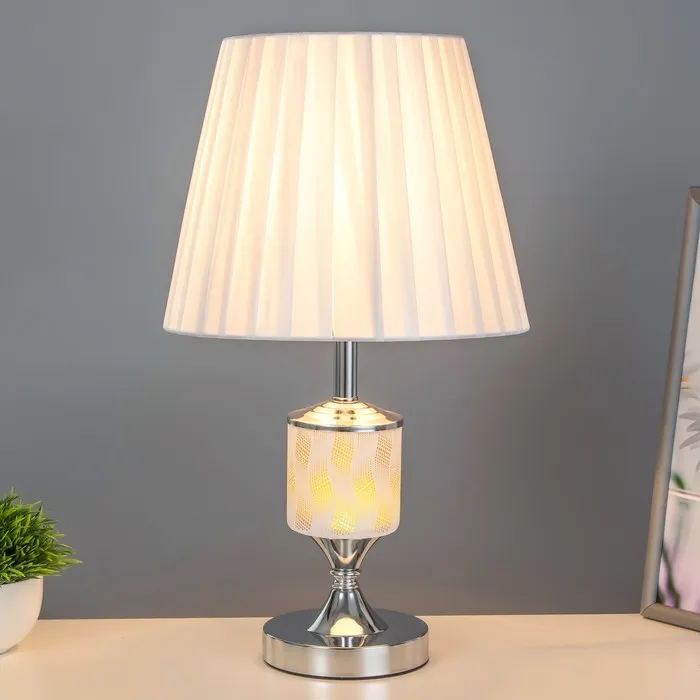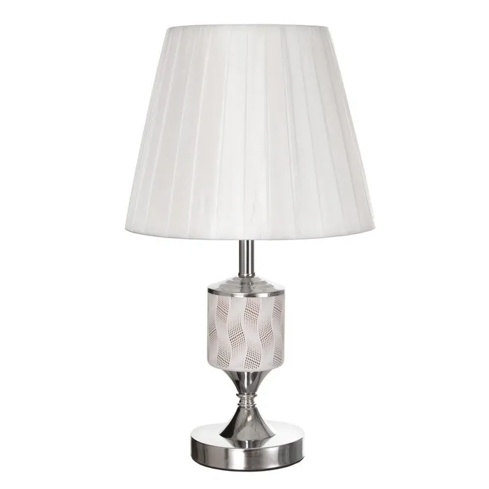 Эта элегантная настольная лампа станет стильным акцентом в вашем интерьере. С высотой 42 см и размерами 25×25 см, она отлично впишется в классические и современные помещения. Бело-хромовое основание из металла и текстильный абажур светлых тонов создают атмосферу уюта и комфорта, а направленный вверх свет добавляет пространства.