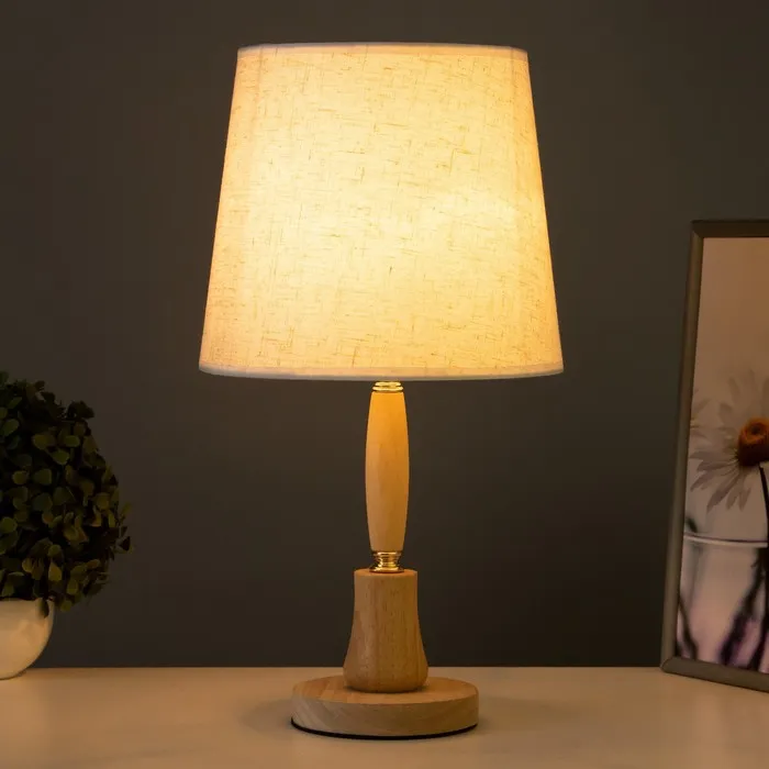 Эта настольная лампа с конусным абажуром в светлых тонах и основанием из дерева и металла станет стильным акцентом в любом интерьере. Высота 44,5 см и размеры 24×24 см делают её подходящей для размещения на столах и тумбах. Лампа поддерживает накаливание мощностью до 40 Вт с цоколем E27, что позволяет создать необходимое освещение.