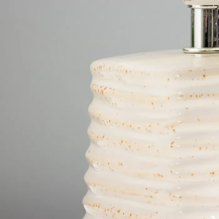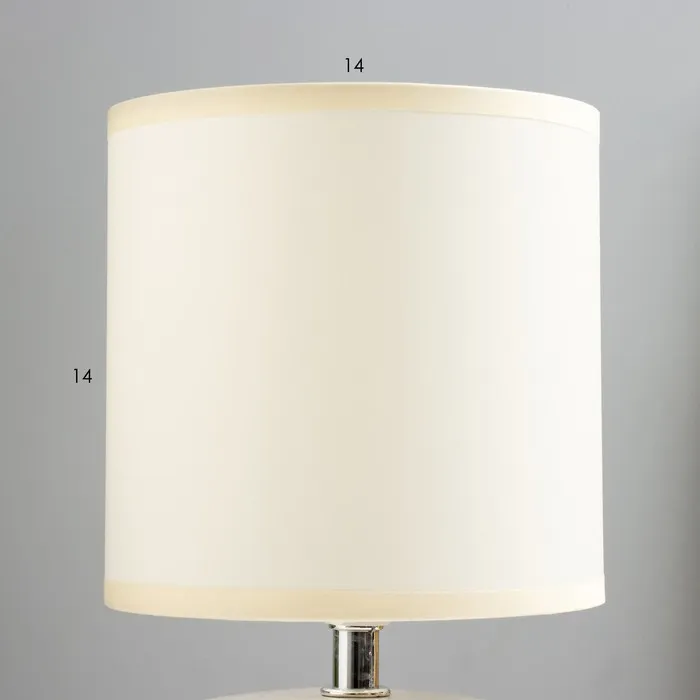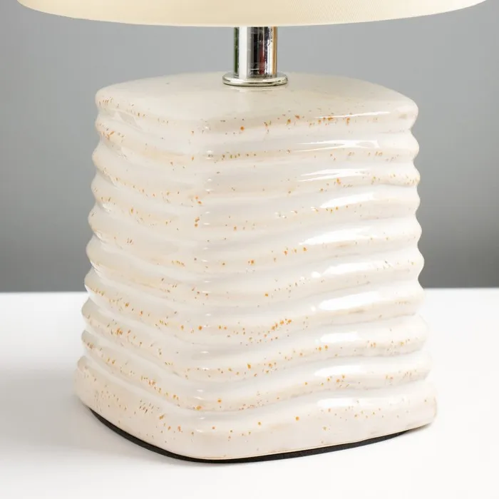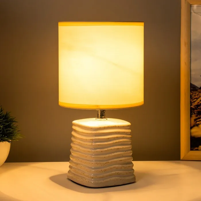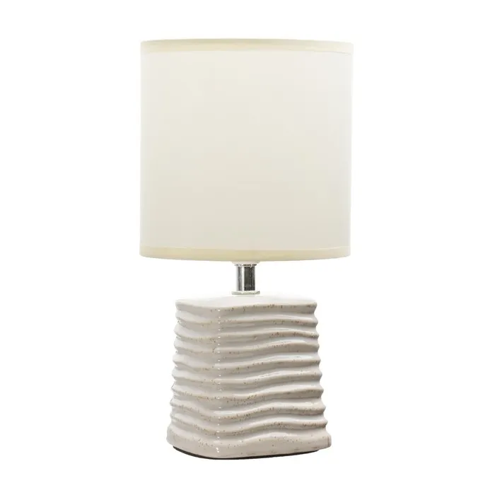 Эта компактная настольная лампа с текстильным абажуром станет стильным дополнением вашего интерьера. Высота 26,5 см и размеры 14×14 см позволяют ей легко вписаться в любое пространство, будь то стол, тумбочка или полка. Бежевое керамическое основание и светлый абажур создают гармоничное сочетание, подходящее для различных стилей оформления.