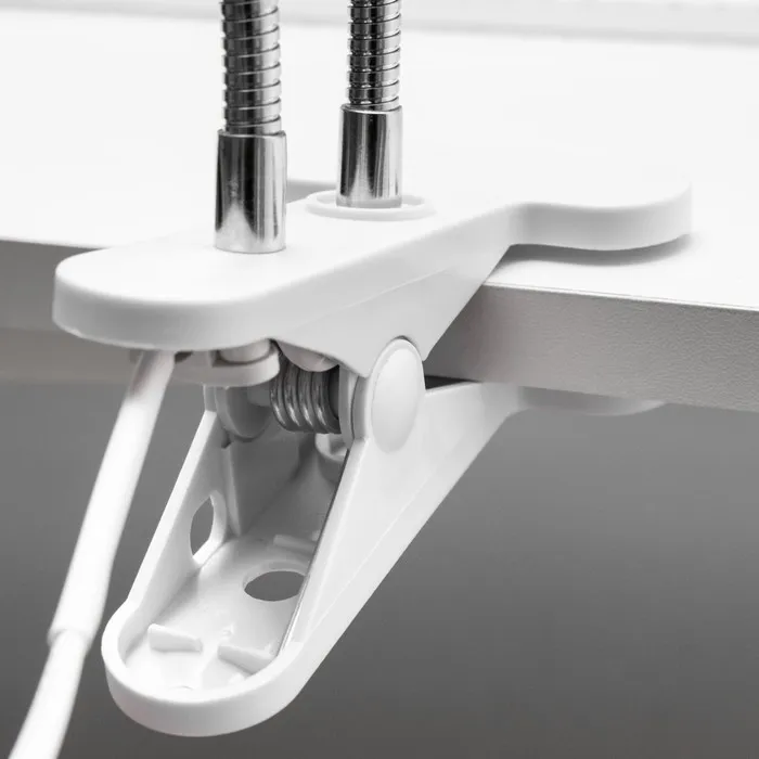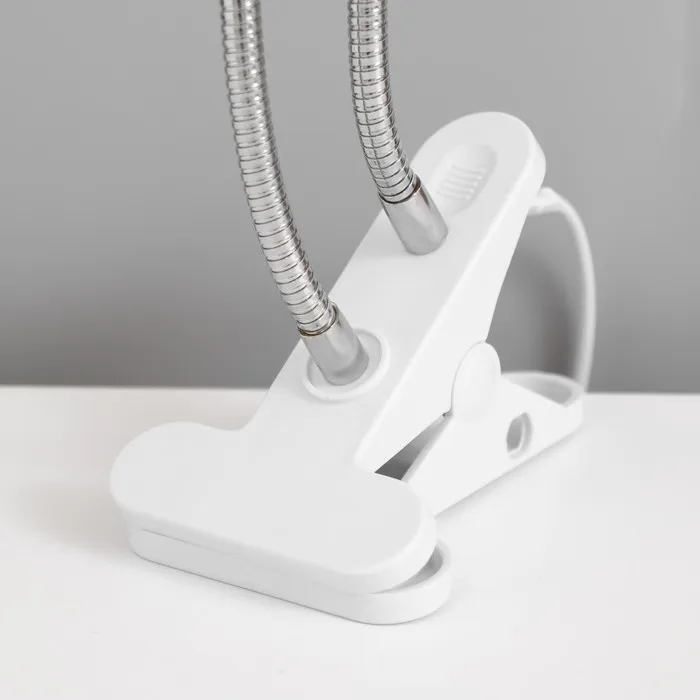 - Крепление на прищепке позволяет легко установить лампу на столе или полке, экономя пространство.
