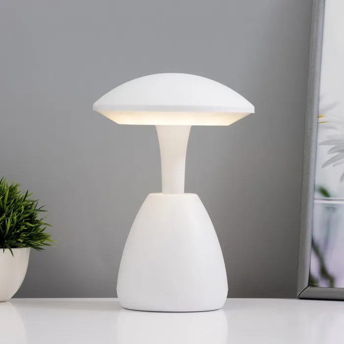 Эта стильная настольная лампа станет идеальным решением для вашего рабочего стола или ночного столика. С высотой 21 см и компактными размерами 14,5×14,5 см, она легко впишется в любое пространство. Белый пластиковый корпус и полушаровый плафон обеспечивают современный и лаконичный вид, а встроенные светодиоды создают комфортное освещение.