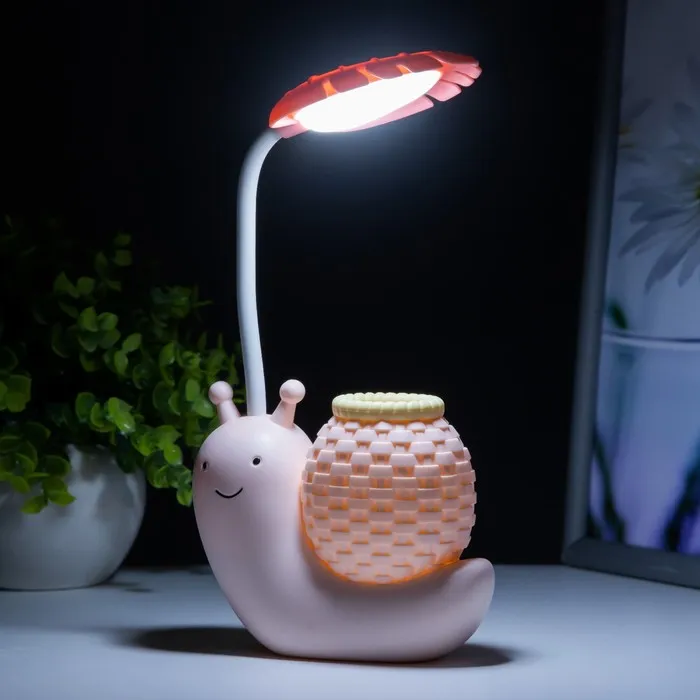 Эта оригинальная настольная лампа в форме улитки станет ярким акцентом в детской комнате. С размерами 10,5×5×28 см, она идеально подходит для создания уютного освещения во время чтения или учебы. Светодиодная лампа мощностью 2 Вт обеспечивает яркий, но мягкий свет, а встроенный аккумулятор и возможность подключения через USB делают её удобной в использовании.