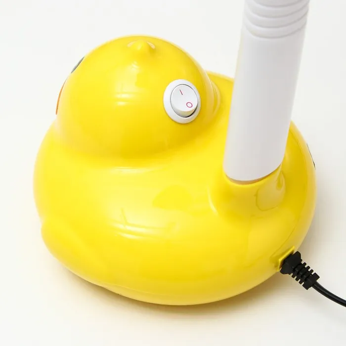 Эта яркая настольная лампа в форме утёнка станет отличным акцентом в детской комнате. С размерами 16×15×37 см, она идеально подходит для создания уютной и весёлой атмосферы. Светодиодная лампа мощностью 15 Вт обеспечивает мягкое освещение, а плафон из пластика равномерно распределяет свет вниз.
