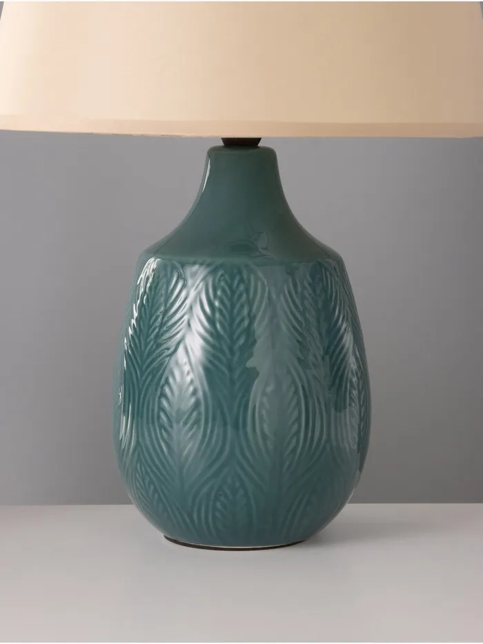 - Яркий бирюзовый цвет: Светильник с керамическим основанием привносит в комнату нотки радости и легкости, создавая приятное освещение.
