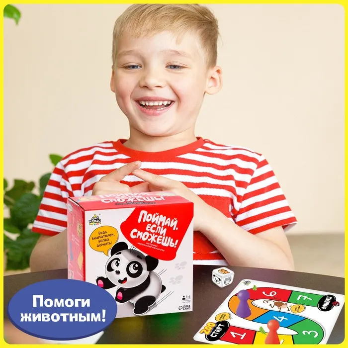 «Поймай, если сможешь!» — это настольная игра на скорость и реакцию, где вам предстоит помочь зверям сбежать из зоопарка. При этом вам будет мешать смотритель, ведь его задача — сохранить зоопарк.