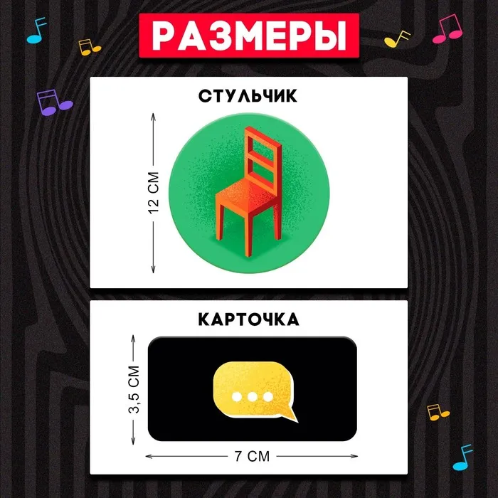 - После каждого выбывшего участника убирайте одну карточку стула и продолжайте игру.
