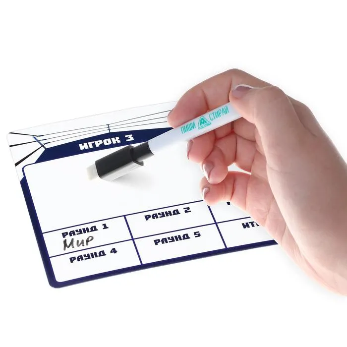 Игрок переворачивает карту со словом, и все участники выписывают его на свои планшеты.