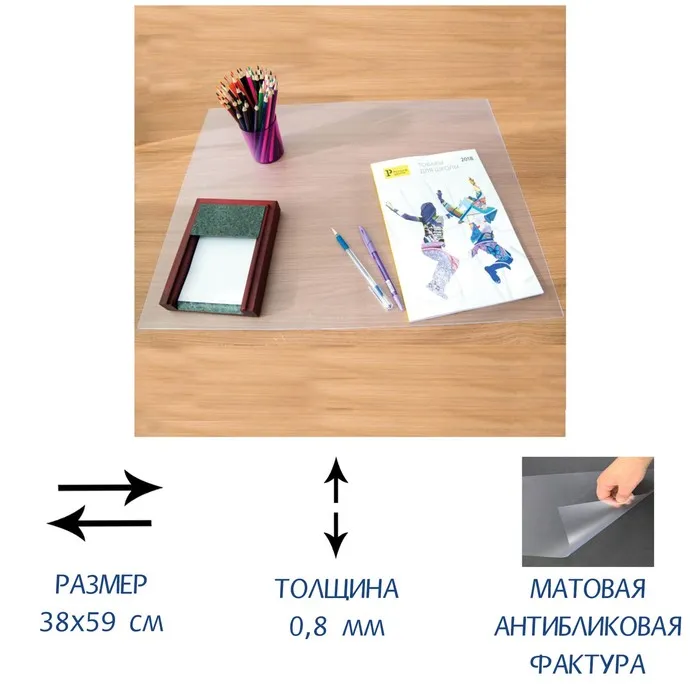 Тонкая защитная пленка для стола идеальна как для домашнего, так и для офисного использования. Офисная накладка способствует поддержанию порядка и чистоты на рабочей поверхности, не обременяя при этом вас необходимостью в сложной установке или специальном уходе. Эта прозрачная матовая защита с легкостью вписывается в любой интерьер, становясь надежным партнером вашему столу.