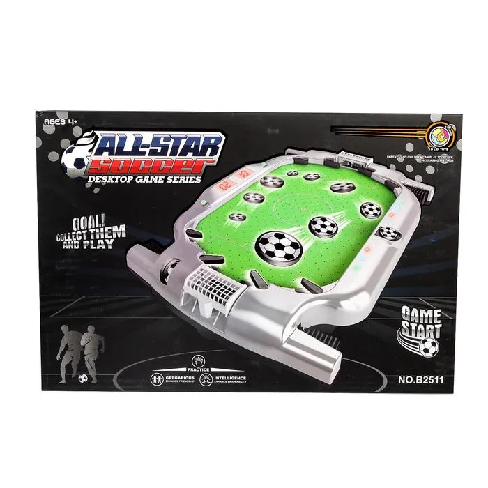 2 участника соревнуются друг с другом, задача каждого — забивать голы в ворота соперника с помощью кнопок и рычажков.