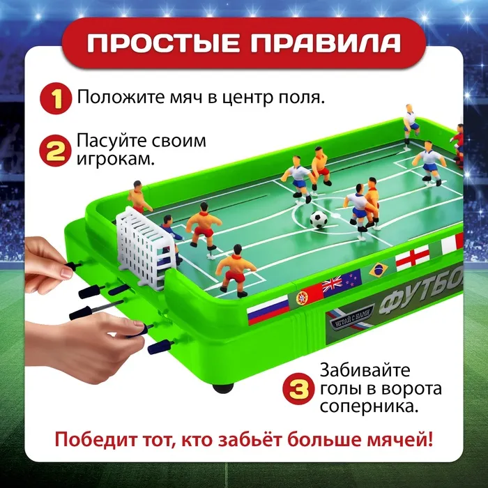 С настольным футболом «Кубок чемпиона» ребёнок прокачает координацию движений и скорость реакции, выработает спортивный азарт и волю к победе.