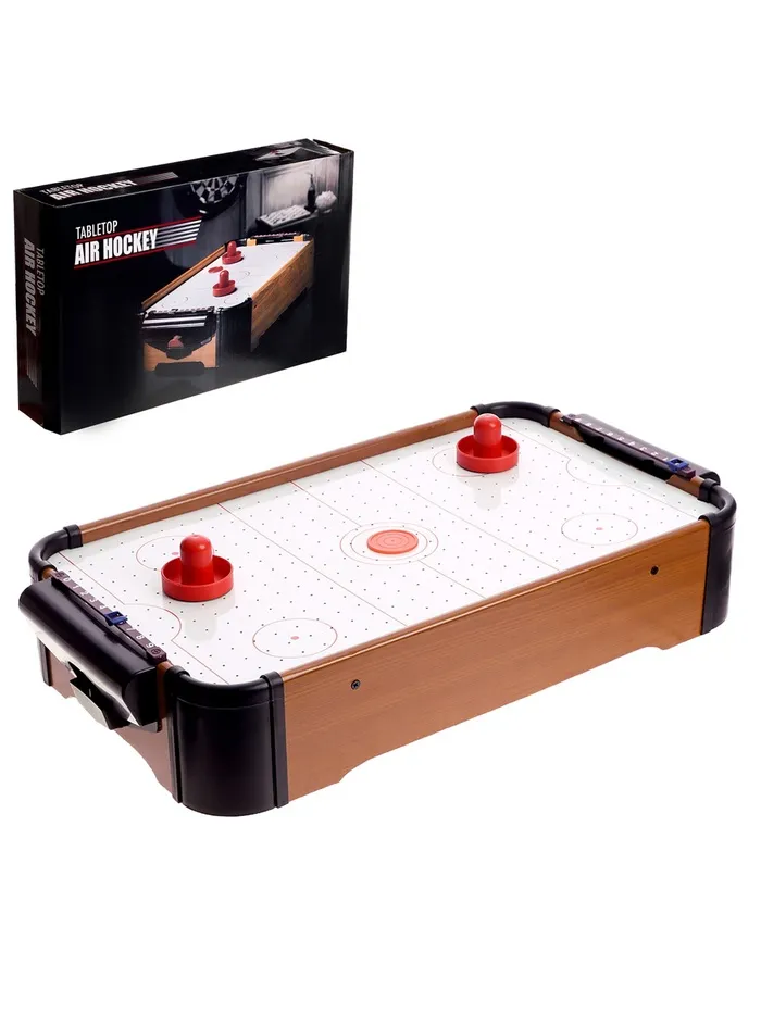 «Аэрохоккей» — настольная игра для двоих. Устройте захватывающее соревнование с настоящим аэрохоккеем в мини-формате и забейте как можно больше голов!