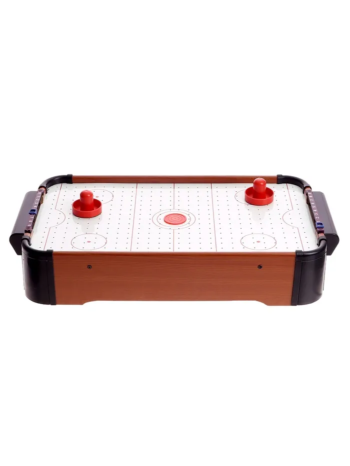 Мини-версия классического аэрохоккея займёт достойное место в коллекции игр малыша. Она отлично тренирует координацию движений и моторику рук, а также учит ребёнка мыслить стратегически.