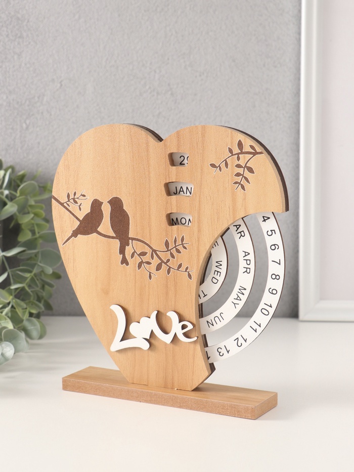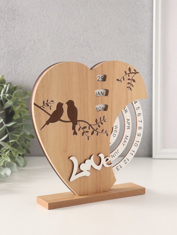 Настольный календарь-вечный «Две птички на сердце», дерево, 3.7×18×19.5 см — Характеристики