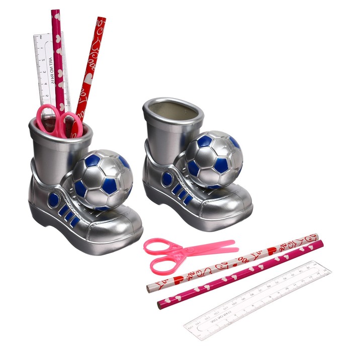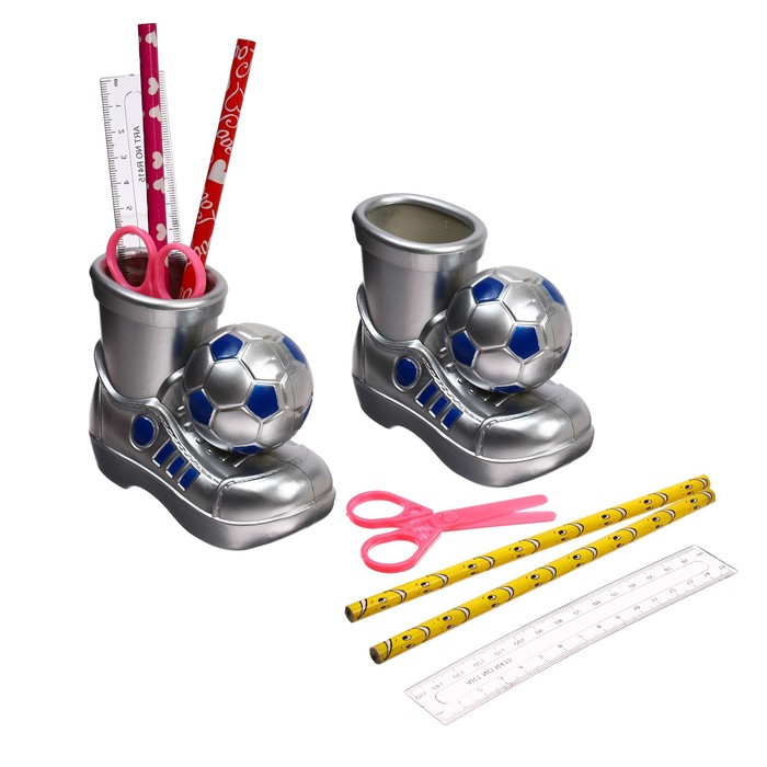 Настольный набор позволяет эргономично и оригинально организовать размещение канцелярских принадлежностей ребенка.