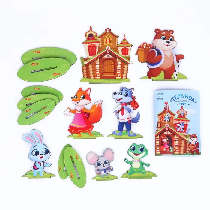 - В комплекте вы найдёте героев и сценарий для постановки мини-спектакля по мотивам известной сказки.