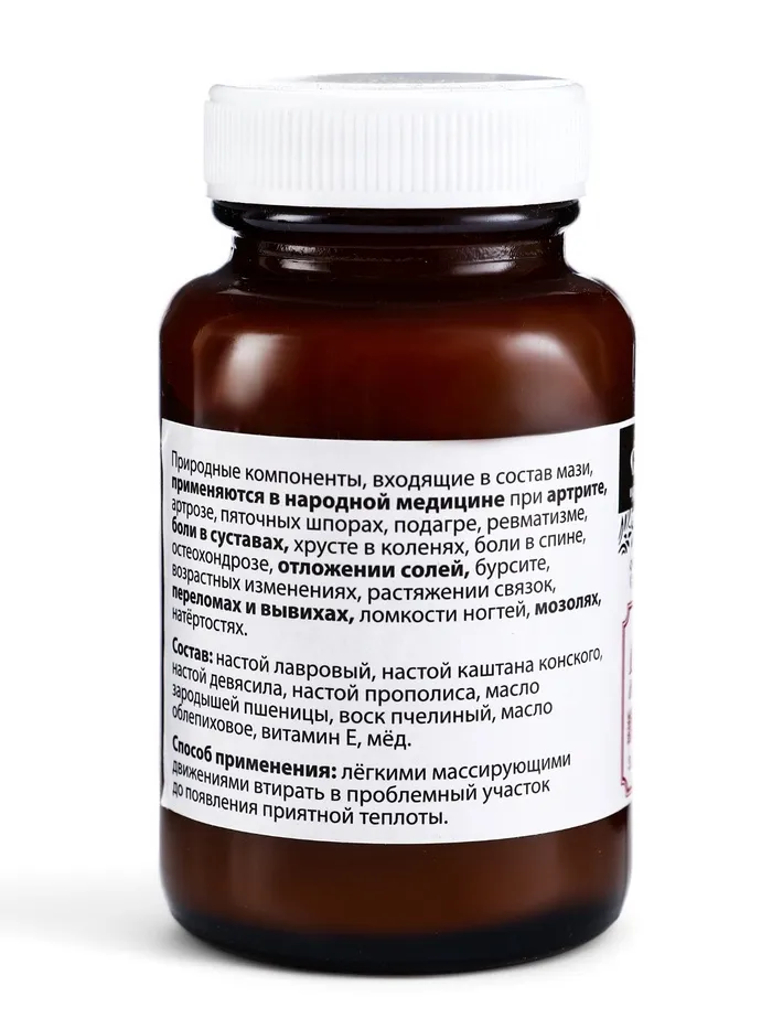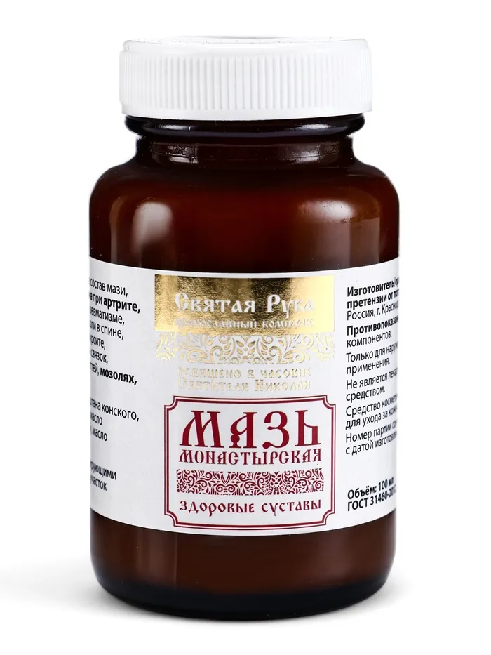 Натуральная мазь Здоровые суставы, стекло,"Святая рука", 100 мл — Характеристики