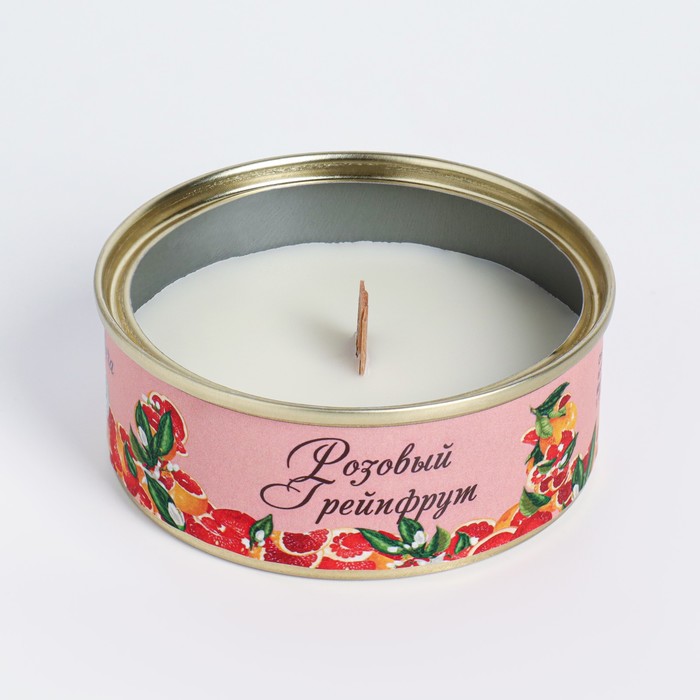 Натуральная свеча в жестяной банке из соевого воска "Розовый грейпфрут", 7,5х3 см