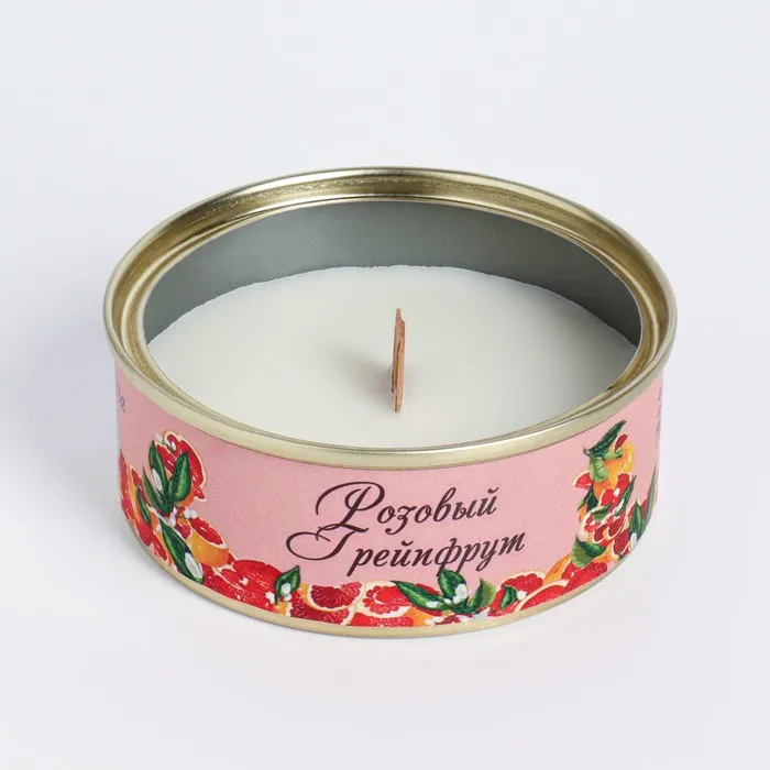 Натуральная свеча в жестяной банке из соевого воска "Розовый грейпфрут", 7,5х3 см — Характеристики