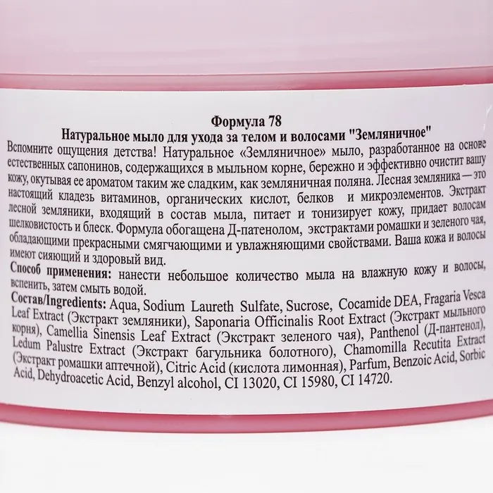 Натуральное мыло для ухода за телом и волосами "Земляничное" 450 мл — Характеристики