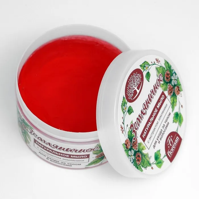 Вспомните ощущения детства! Натуральное «Земляничное» мыло, разработанное на основе естественных сапонинов, содержащихся в мыльном корне, бережно и эффективно очистит вашу кожу, окутывая ее ароматом таким же сладким, как земляничная поляна. Лесная земляника — это настоящий кладезь витаминов, органических кислот, белков и микроэлементов. Экстракт лесной земляники, входящий в состав мыла, питает и тонизирует кожу, придает волосам шелковистость и блеск. Формула обогащена протеинами козьего молока, которые обладают прекрасными смягчающими и увлажняющими свойствами. Ваша кожа и волосы имеют сияющий и здоровый вид.