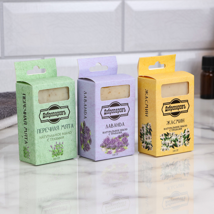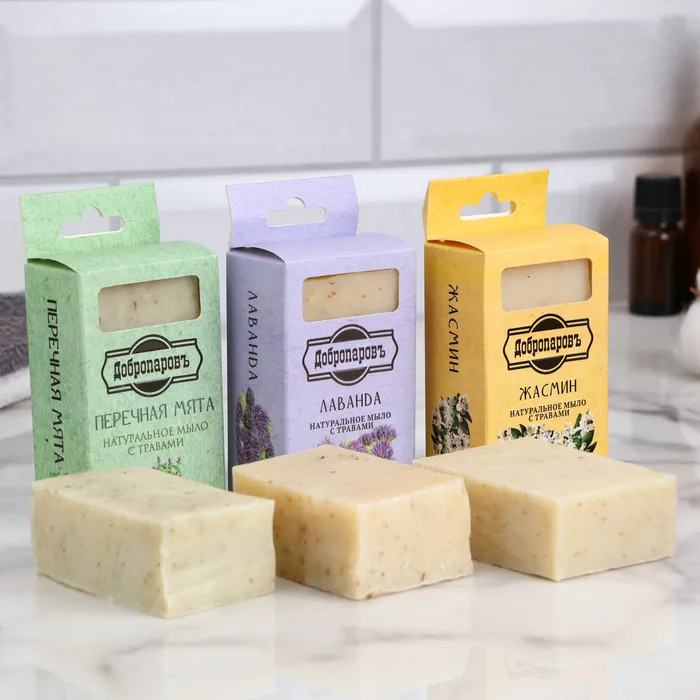 Набор натурального мыла "Лаванда, Мята, Жасмин", 3 шт – это идеальный уход для вашей кожи, сочетающий в себе природные ароматы и полезные свойства натуральных ингредиентов. Этот набор не только подарит вашей коже нежное очищение и увлажнение, но и создаст атмосферу расслабления и гармонии в вашем доме.