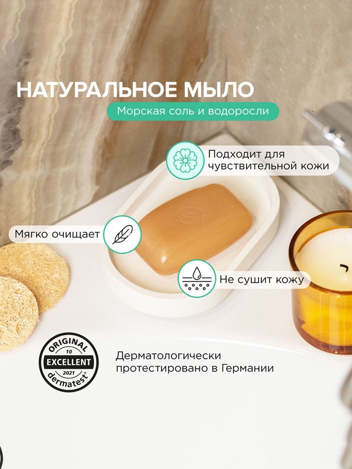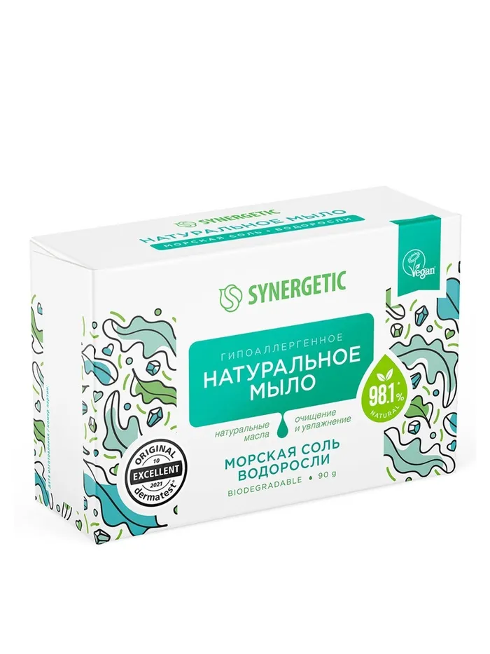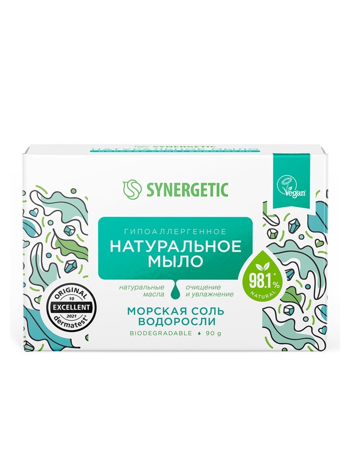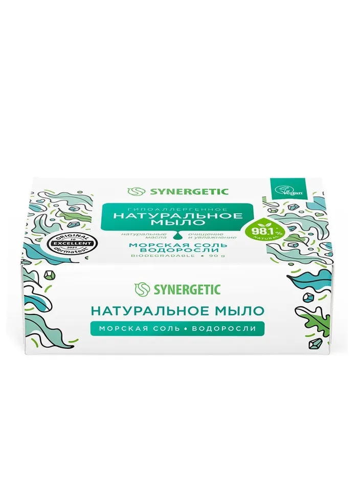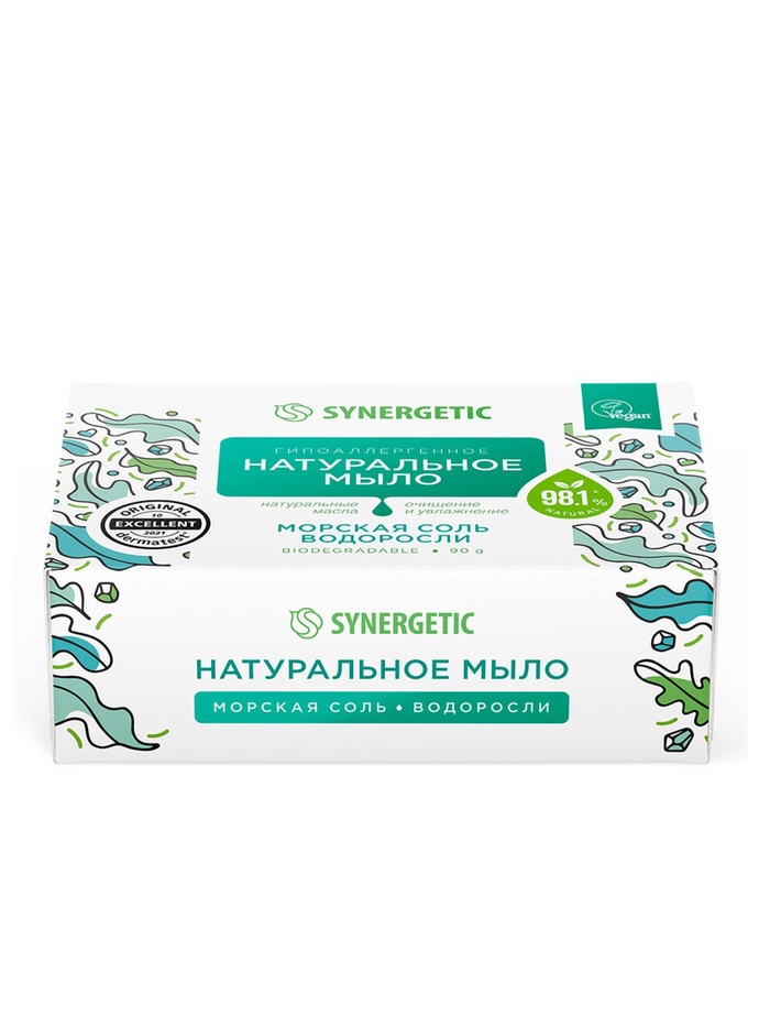 Натуральное туалетное мыло Synergetic "Морская соль и водоросли", гипоалергенное, 90 г — Характеристики