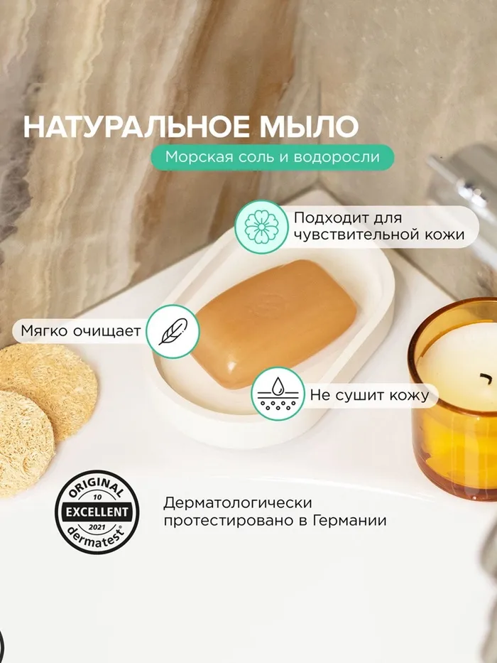 Натуральное кусковое туалетное мыло SYNERGETIC "Морская соль и водоросли" - средство для мягкого очищения и ухода за кожей, более чем на 99% состоящее из натуральных компонентов. Мыло имеет натуральную основу, изготовленную из растительных масел, которые бережно воздействуют на кожу, предохраняя от пересушивания при частом мытье рук. Натуральные эфирные масла и экстракты оказывают дополнительный уход и восстановление, а зелёные хелаты не наносят вред окружающей среде. Пантенол - незаменимый по эффективности компонент для защиты сухой и чувствительной кожи, он усиливает действие увлажняющих компонентов и способствует восстановлению барьерных функций. Парфюмерная композиция на основе натуральных эфирных масел эвкалипта, апельсина и пачули оставляет на коже освежающий аромат. Нанести на влажную кожу, вспенить и смыть водой. Только для наружного применения. Беречь от детей. При попадании средства в глаза промыть водой. Использовать строго по назначению. Aqua, Polyglyceryl-3 Cetyl Ether Olivate/Succinate, Vitis Vinifera (Grape) Seed Oil, Cocos Nucifera Oil, Coco-Caprylate/Caprate, Isoamyl Laurate, Propanediol, Glycerin, Betaine, Niacinamide, Trehalose, Sodium Hyaluronate, Tocopheryl Acetate, Xanthan Gum, Behenyl Alcohol, Glyceryl Stearate, Saccharide Isomerate, Oryza Sativa (Rice) Starch, Parfum, Benzyl Alcohol, Glyceryl Laurate, Lactic Acid, Citric Acid, Sodium Citrate.