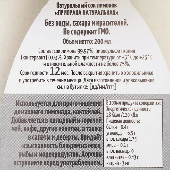 Соки лимона и лайма незаменимы в кулинарии и по вкусовым качествам и удобству использования превышают сок, который можно получить в домашних условиях методом самостоятельного отжима из фруктов. Кроме того, вы можете быть уверены, что лимоны или лаймы, из которых произведены соки АЗБУКА ПРОДУКТОВ, соответствуют всем высочайшим стандартам европейского качества, что не всегда возможно понять, приобретая фрукты в магазине. Наши соки — идеальная приправа для ваших салатов, маринадов, горячих блюд, приготовления лимонадов и других напитков!