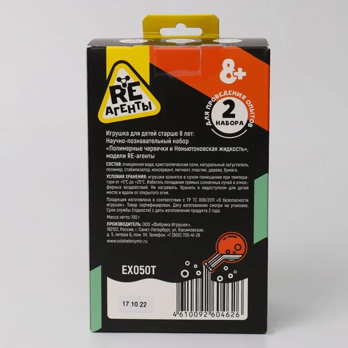 Научно-познавательный набор «Полимерные червячки и Неньютоновская жидкость» — это отличный способ для детей познакомиться с основами химии в игровой форме. Он поможет развить у ребёнка любознательность, воображение, творческие способности. Также ребёнок узнает о химических свойствах веществ.