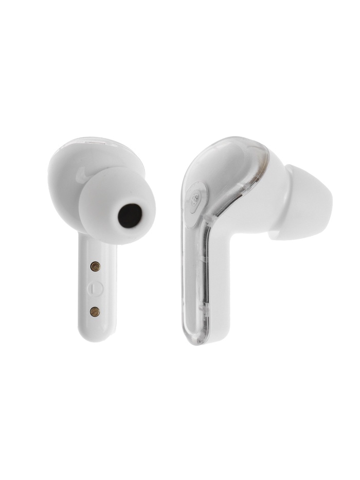 Их лаконичный белый цвет и прозрачный кейс для зарядки подчеркнут ваш стиль, а удобная конструкция обеспечит комфорт даже при длительном использовании. Благодаря ёмкости аккумулятора 200 мАч, вы сможете наслаждаться музыкой или звонками до 5 часов без необходимости частой подзарядки. А современный разъём USB Type-C сделает процесс зарядки быстрым и удобным.