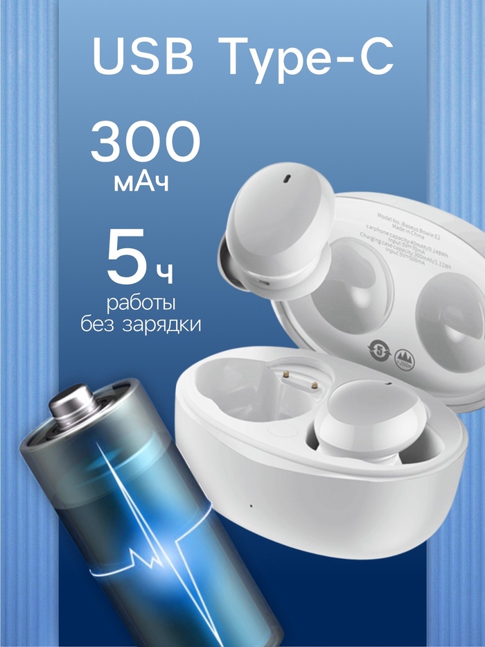 Наушники беспроводные Baseus E2, TWS, вакуумные, Bluetooth 5.2, 40/300 мАч, белые — Характеристики