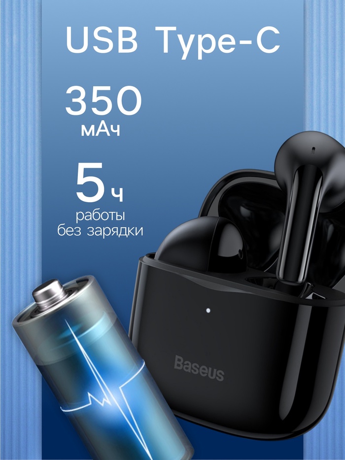 Наушники беспроводные Baseus E3, TWS, вкладыши, Bluetooth 5.0, 35/330 мАч, чёрные — Характеристики