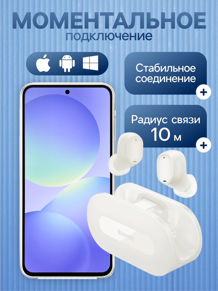 Наушники Baseus EZ10 — это отличный выбор для тех, кто ценит удобство, качество звука и стиль. Эти вакуумные наушники с беспроводным подключением предлагают потрясающее звучание в формате стерео, которое станет идеальным спутником для прослушивания музыки, просмотра видео или разговоров по телефону.