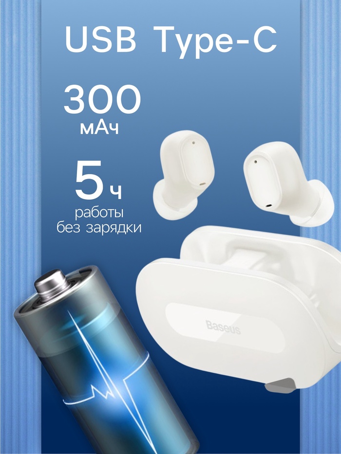 Наушники беспроводные Baseus EZ10, TWS, вакуумные, Bluetooth 5.3, 40/300 мАч, белые — Характеристики