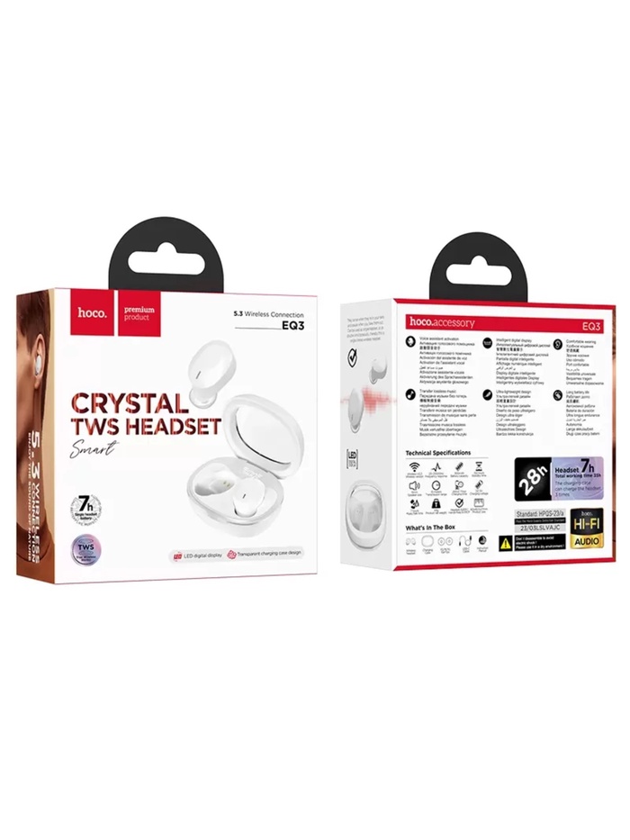 Наушники беспроводные Hoco EQ3, TWS, вакуумные, Bluetooth 5.3, 40/300 мАч, шумоподавление, белые — Характеристики