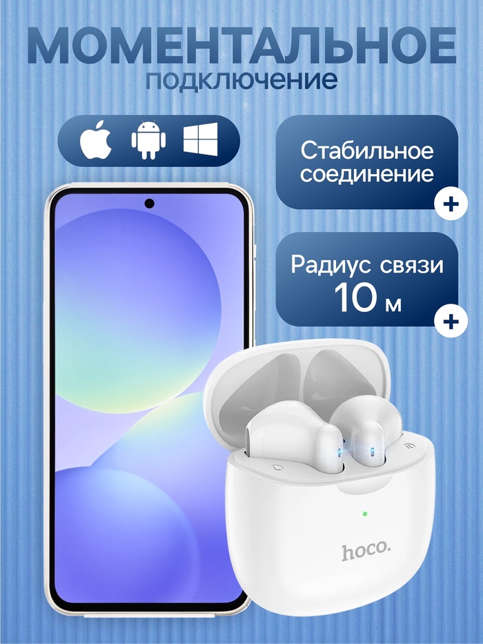 Наушники Hoco ES56 — это современное решение для тех, кто ценит комфорт и высокое качество звука. Беспроводные наушники с технологией TWS (True Wireless Stereo) обеспечивают полную свободу движений, без необходимости подключения к проводам. Благодаря Bluetooth 5.1, они предлагают стабильное и быстрое соединение с вашим устройством на расстоянии до 10 метров.