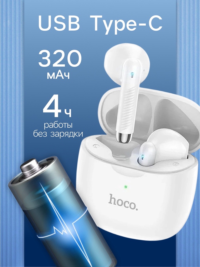 Наушники беспроводные Hoco ES56, TWS, вкладыши, Bluetooth 5.1, 30/320 мАч, белые — Характеристики