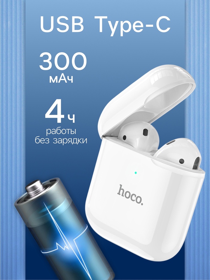 Наушники беспроводные Hoco EW06, TWS, вкладыши, Bluetooth 5.1, 35/300 мАч, белые — Характеристики