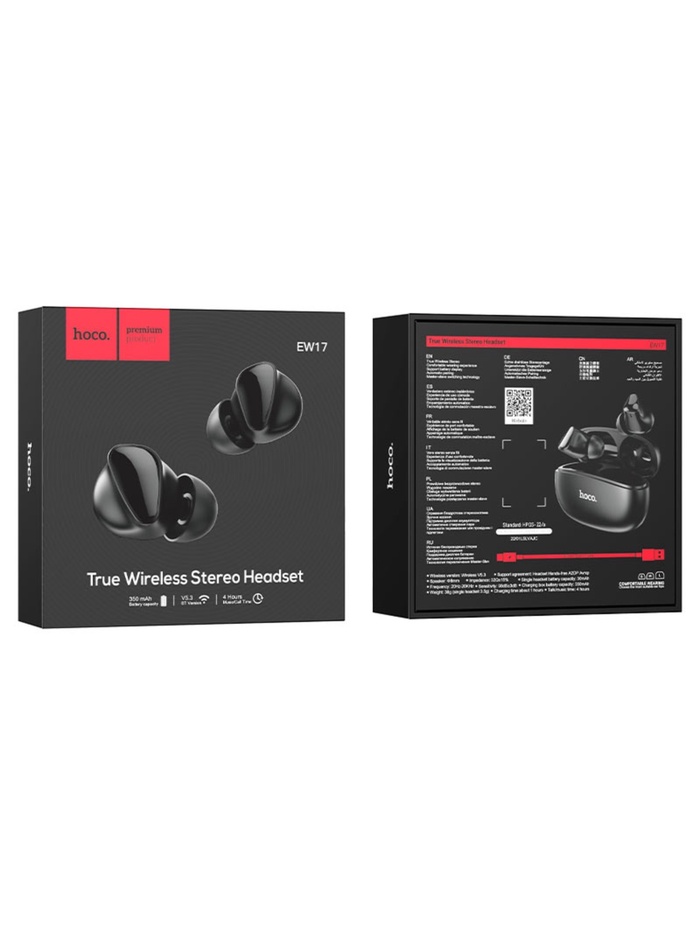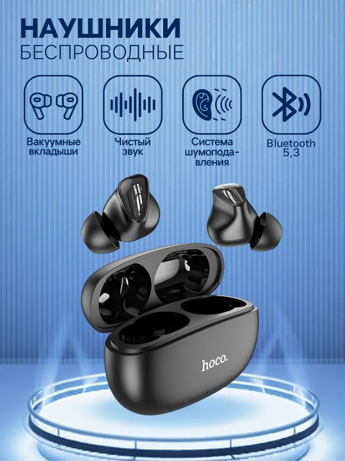 Наушники беспроводные Hoco EW17, TWS, вакуумные, Bluetooth 5.3, 30/350 мАч, шумоподавление, чёрные — Характеристики