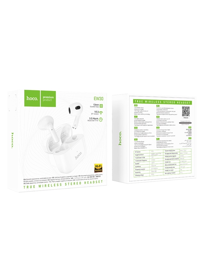 Наушники беспроводные Hoco EW30, TWS, вкладыши, Bluetooth 5.3, 30/300 мАч, белые — Характеристики