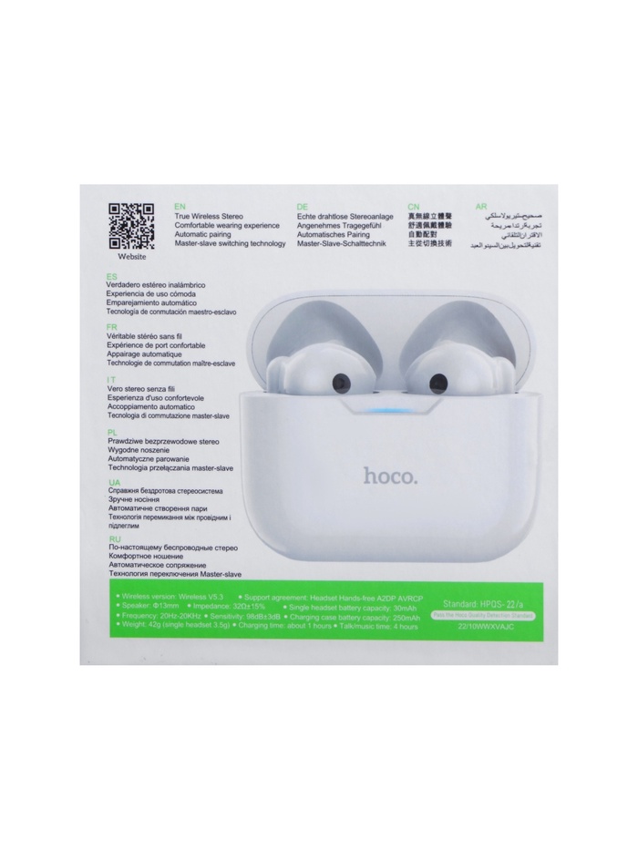 Наушники беспроводные Hoco EW34, TWS, вкладыши, Bluetooth 5.3, 30/250 мАч, белые — Характеристики