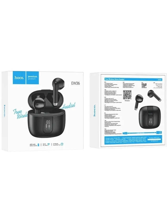 Наушники беспроводные Hoco EW36, TWS, вкладыши, Bluetooth 5.3, 30/400 мАч, чёрные — Характеристики