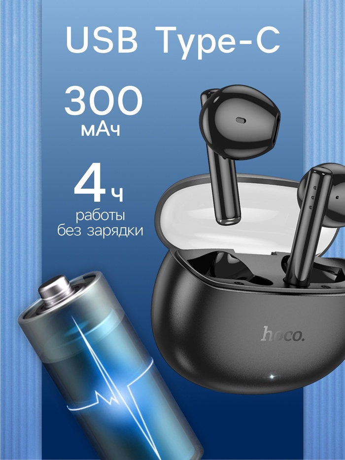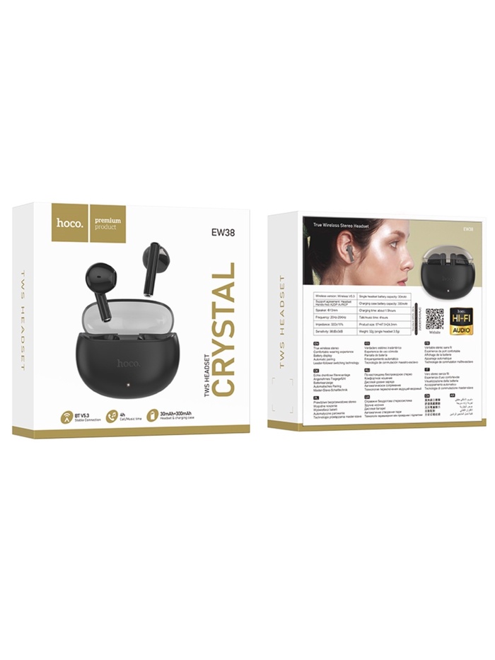 Наушники беспроводные Hoco EW38, TWS, вкладыши, Bluetooth 5.3, 30/300 мАч, шумоподавление, чёрные — Характеристики